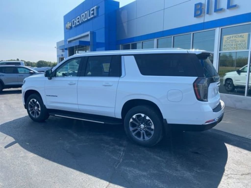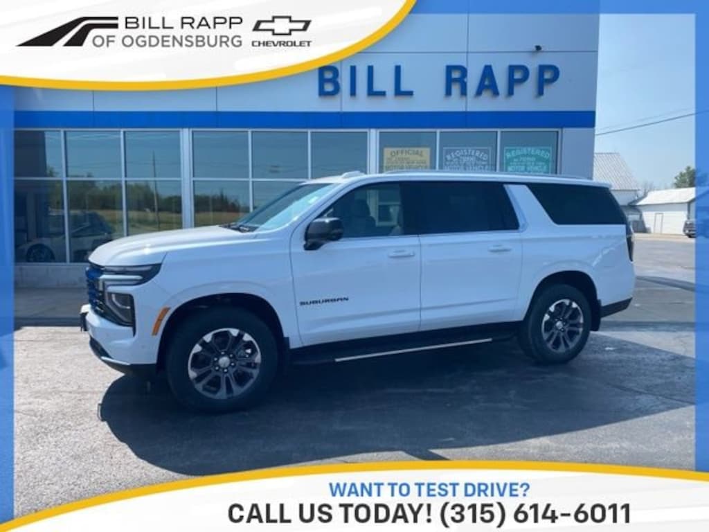 Summit White 2025 Chevrolet Suburban LT 4WD 10-Speed Automatic with Overdrive EcoTec3 5.3L V8 1st & 2nd Rows All-Weather Floor Liners (LPO), 2-Speed Active Electronic AutoTrac Transfer Case, 2-Way Driver Power Lumbar Seat Adjuster, 2-Way Front Passenger Power Lumbar Seat Adjuster, 2nd Row Pwr Release 60/40 Split-Folding Bench Seat, 3.23 Rear Axle Ratio, 3rd Row 60/40 Power-Folding Split-Bench, 3rd Row All-Weather Floor Liners (LPO), 3rd row seats: split-bench, 4-Wheel Disc Brakes, 6 Speakers, 6-Speaker Audio System, 8-Way Power Driver Seat Adjuster, 8-Way Power Front Passenger Seat Adjuster, ABS brakes, Advanced Trailering Package, Air Conditioning, All-Weather Cargo Mat (LPO), All-Weather Liner Protection Package (LPO), Alloy wheels, AM/FM radio: SiriusXM with 360L, Apple CarPlay/Android Auto, Auto High-beam Headlights, Auto-Dimming Inside Rear-View Mirror, Automatic temperature control, Black Mirror Caps (LPO), Black Name Plates (LPO), Blind Zone Steering Assist w/Trailering, Bose 10-Speaker Surround w/CenterPoint, Brake assist, Bumpers: body-color, Comfort Package, Compass, Dark Essentials Package (LPO), Delay-off headlights, Driver door bin, Driver vanity mirror, Dual front impact airbags, Dual front side impact airbags, Dual-Pane Power Panoramic Sunroof, Electronic Stability Control, Emergency communication system: OnStar Services capable, Exterior Parking Camera Rear, Extra Capacity Cooling System, Four wheel independent suspension, Front & Rear Black Bowtie Emblems (LPO), Front anti-roll bar, Front Bucket Seats, Front Center Armrest, Front dual zone A/C, Front LED Fog Lamps, Front reading lights, Fully automatic headlights, Heated 2nd Row Outboard Seats, Heated door mirrors, Heated Driver & Front Passenger Seats, Heated front seats, Heated Power-Adjustable Outside Mirrors, Heated Steering Wheel, Hill Descent Control, Hitch View w/Pan/Zoom Image Adjustment, Illuminated entry, Integrated Trailer Brake Controller, Leather-Appointed Seating, LED Headlamps w/LED Daytime Running Lamps, LED Tail Lamps, License Plate Front Mounting Package, Low tire pressure warning, Luxury Package, Max Trailering Package, Memory seat, Memory Settings, Memory Settings For Driver, Molded Splash Guards, Navigation system: Google built-in compatibility (select service plan required, terms and limitations apply), Occupant sensing airbag, Outside temperature display, Overhead airbag, Overhead console, Panic alarm, Passenger door bin, Passenger vanity mirror, Power door mirrors, Power driver seat, Power Liftgate, Power passenger seat, Power Release 2nd Row Bucket Seats, Power steering, Power windows, Preferred Equipment Group 1LT, Premium Smooth Ride Suspension, Radio data system, Radio: 17.7 Diagonal Advanced Color LCD Display, Rain sensing wipers, Rear air conditioning, Rear anti-roll bar, Rear Power Liftgate, Rear reading lights, Rear seat center armrest, Rear window defroster, Rear window wiper, Remote keyless entry, Security system, SiriusXM w/360L Trial Subscription, Smart Trailer Integration Indicator, Speed control, Speed-sensing steering, Split folding rear seat, Spoiler, Steering wheel mounted audio controls, Tachometer, Telescoping steering wheel, Tilt steering wheel, Traction control, Trip computer, Universal Home Remote, Variably intermittent wipers, Voltmeter, Wheels: 18 x 8.5 Bright Silver Painted Aluminum, Wheels: 20 x 9 Machined Aluminum, Wireless Apple CarPlay/Wireless Android Auto, Wireless Phone Charging.