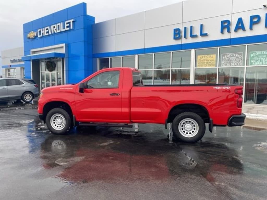 Red Hot 2026 Chevrolet Silverado 1500 WT 4WD 10-Speed Automatic EcoTec3 5.3L V8 10-Speed Automatic, 4WD, Jet Black Vinyl, 2 Speakers, 2-Speaker Audio System, 220 Amp Alternator, 3.5 Monochromatic Display Driver Info Center, 4-Way Manual Driver Seat Adjuster, 4-Wheel Disc Brakes, 40/20/40 Front Split Bench Seat, ABS brakes, Air Conditioning, All-Weather Floor Liner, Apple CarPlay/Android Auto, Auto High-beam Headlights, Auto-Locking Rear Differential, Automatic Emergency Braking, Auxiliary External Transmission Oil Cooler, Black (Semi-Gloss) Front Bumper, Black (Semi-Gloss) Rear Bumper, Black Work Step (LPO), Bluetooth® For Phone, Brake assist, Chevytec Spray-on Black Bedliner, Color-Keyed Carpeting Floor Covering, Compass, Deep-Tinted Glass, Delay-off headlights, Driver door bin, Dual front impact airbags, Dual front side impact airbags, Electric Rear-Window Defogger, Electronic Cruise Control, Electronic Stability Control, Emergency communication system: OnStar, External Engine Oil Cooler, Following Distance Indicator, Forward Collision Alert, Front anti-roll bar, Front Center Armrest w/Storage, Front Frame-Mounted Black Recovery Hooks, Front License Plate Kit, Front Pedestrian Braking, Front reading lights, Front Rubberized Vinyl Floor Mats, Front wheel independent suspension, Fully automatic headlights, HD Rear Vision Camera, Heated door mirrors, Heated Power-Adjustable Outside Mirrors, Heavy-Duty Air Filter, Hitch Guidance, Illuminated entry, Inside Rearview Mirror with Tilt, Integrated Trailer Brake Controller, IntelliBeam Automatic High Beam on/Off, Lane Keep Assist with Lane Departure Warning, LED Cargo Area Lighting, Liner Protection Package (LPO), Locking Tailgate, Low tire pressure warning, Manual Tailgate Function with No EZ Lift, Manual Tilt Wheel Steering Column, Molded Black Splash Guards, Occupant sensing airbag, OnStar Services Capable, Outside temperature display, Overhead airbag, Overhead console, Panic alarm, Passenger door bin, Passenger vanity mirror, Power door mirrors, Power Front Windows with Driver Express Up/Down, Power Front Windows with Passenger Express Down, Power steering, Power windows, Preferred Equipment Group 1WT, Premium audio system: Chevrolet Infotainment 3, Radio data system, Radio: Chevrolet Infotainment 3 System, Rear reading lights, Rear step bumper, Rear Wheel House Liners, Remote Keyless Entry, Remote keyless entry, Rubberized-Vinyl Floor Covering, SiriusXM Delete, SiriusXM Trial Subscription, Snow Plow Prep Package, Solar Absorbing Tinted Glass, Speed control, Speed-sensing steering, Standard Suspension Package, Standard Tailgate, Tachometer, Teen Driver, Tilt steering wheel, Tire Pressure Monitoring System, Traction control, Trailering Package, Trip computer, Upfitter Switch Kit (5), Variably intermittent wipers, Vinyl Seat Trim, Voltmeter, Wheels: 17 x 8 Ultra Silver Painted Steel, Wi-Fi Hot Spot Capable, WT Convenience Package, WT Value Package, 10-Speed Automatic, 4WD, Jet Black Vinyl.