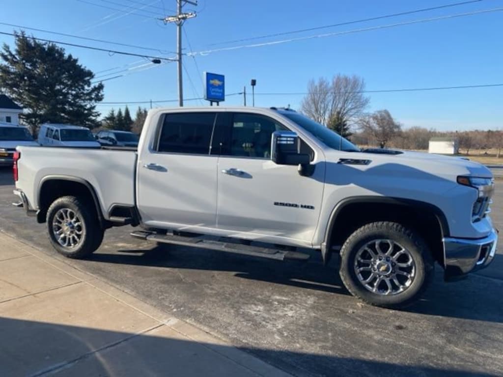Summit White 2026 Chevrolet Silverado 2500HD LTZ 4WD 10-Speed Automatic Duramax 6.6L V8 Turbodiesel 10-Speed Automatic, 4WD, Jet Black Leather, 10-Way Power Driver Seat Adjuster with Lumbar, 10-Way Power Passenger Seat Adjuster with Lumbar, 120-Volt Bed Mounted Power Outlet, 120-Volt Interior Power Outlet, 170 Amp Alternator, 1st and 2nd Row All-Weather Floor Liners, 2 Charge/Data USB Ports Inside Center Console, 220 Amp Alternator, 4-Wheel Disc Brakes, 6 Speakers, 6-Speaker Audio System, 6 Rectangular Chromed Tubular Assist Steps, 720 Cold-Cranking Amps Heavy-Duty Battery, ABS brakes, Adaptive Cruise Control, Air Conditioning, Alloy wheels, AM/FM radio: SiriusXM with 360L, Apple CarPlay/Android Auto, Auto High-beam Headlights, Auto-dimming door mirrors, Auto-Dimming Inside Rear-View Mirror, Auto-dimming Rear-View mirror, Automatic temperature control, Bed View Camera with Two Trailer Camera Provisions, Black Chevytec Spray-on Bedliner, Black Molded Splash Guards, Black Name Plates, Black Tailgate Lettering, Bluetooth® For Phone, BOSE Premium 7-Speaker Sound System, Brake assist, Bumpers: chrome, Chevrolet Connected Access Capable, Chrome Door Handles, Chrome Mirror Caps, Color-Keyed Carpeting Floor Covering, Compass, Dark Essentials Package, Deep-Tinted Glass, Delay-off headlights, Deleted Mobile Service Plus, Driver door bin, Driver Memory, Driver vanity mirror, Dual front impact airbags, Dual front side impact airbags, Durabed Pickup Bed, Electric Rear-Window Defogger, Electronic Cruise Control with Set and Resume Speed, Electronic Stability Control, Emergency communication system: OnStar, Engine Block Heater, Exhaust Brake, EZ Lift Power Lock and Release Tailgate, Floor-Mounted Center Console, Front 40/20/40 Split-Bench Seats with Lockable Storage, Front anti-roll bar, Front Black Bowtie Emblem, Front Bucket Seats, Front Center Armrest w/Storage, Front Chrome Recovery Hooks, Front dual zone A/C, Front fog lights, Front LED Fog Lamps, Front License Plate Kit, Front Rain-Sensing Wipers, Front reading lights, Front Rubberized Vinyl Floor Mats, Front wheel independent suspension, Fully automatic headlights, Gooseneck/5th Wheel Prep Package, HD Rear Vision Camera, HD Surround Vision, Heated 2nd Row Outboard Seats, Heated door mirrors, Heated Driver and Front Outboard Passenger Seating, Heated front seats, Heated Steering Wheel, Heated steering wheel, High Idle Switch, Hill Descent Control, Hitch Guidance with Hitch View, Illuminated entry, in-Vehicle Trailering App System, Keyless Open and Start, LED Cargo Area Lighting, LED Smoked Amber Roof Marker Lamps, Low tire pressure warning, LTZ Convenience Package, LTZ Convenience Package II, LTZ Plus Package, Manual Tilt and Telescoping Steering Column, Max Trailering Package, Memory seat, Occupant sensing airbag, Off-Road Suspension, OnStar Services Capable, Outside temperature display, Overhead airbag, Overhead console, Panic alarm, Passenger door bin, Passenger vanity mirror, Perforated Leather-Appointed Front Outboard Seat Trim, Power Door Locks, Power door mirrors, Power driver seat, Power Front Windows with Driver Express Up/Down, Power Front Windows with Passenger Express Up/Down, Power passenger seat, Power Rear Windows with Express Down, Power Sliding Rear Window with Defogger, Power steering, Power Sunroof, Power Up/Down Tailgate Function with Power Lock and Release, Power windows, Preferred Equipment Group 1LZ, Premium audio system: Chevrolet Infotainment 3 Premium, Push Button Start, Radio: Chevrolet Infotainment 3 Premium System, Rain sensing wipers, Rear Cross Traffic Alert, Rear reading lights, Rear Rubberized Vinyl Floor Mats, Rear seat center armrest, Rear step bumper, Rear Wheelhouse Liners, Rear window defroster, Remote keyless entry, Remote Vehicle Starter System, Safety Alert Seat, Safety Package, Security system, SiriusXM with 360L Trial Subscription, Snow Plow Prep/Camper Package, Speed control, Speed-sensing ste
