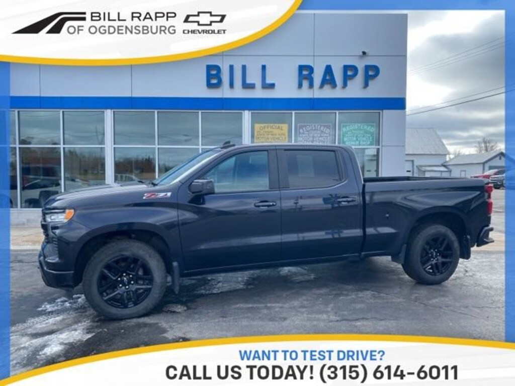 Clean CARFAX. Dark Ash Metallic 2023 Chevrolet Silverado 1500 RST 4WD 10-Speed Automatic EcoTec3 5.3L V8 10-Speed Automatic, 4WD, Jet Black w/Cloth Seat Trim, Protection Package, Z71 Off-Road & Protection Package, Z71 Off-Road Package, 10-Way Power Driver Seat w/Lumbar, 12.3 Multicolor Reconfigurable Digital Display, 120-Volt Bed Mounted Power Outlet, 120-Volt Instrument Panel Power Outlet, 170 Amp Alternator, 2 USB Data Ports, 220 Amp Alternator, 3.23 Rear Axle Ratio, 4-Wheel Disc Brakes, 40/20/40 Front Split-Bench Seat, 6 Speakers, 6-Speaker Audio System, 6 Rectangular Black Tubular Assist Steps (LPO), ABS brakes, Air Conditioning, All-Star Edition, All-Weather Floor Liner (LPO) (AAK), AM/FM radio: SiriusXM with 360L, Apple CarPlay/Android Auto, Auto High-beam Headlights, Auto-Locking Rear Differential, Automatic Emergency Braking, Automatic temperature control, Auxiliary External Transmission Oil Cooler, Bluetooth® For Phone, Brake assist, Bumpers: body-color, Chevrolet Connected Access Capable, Chevytec Spray-On Black Bedliner, Cloth Seat Trim, Color-Keyed Carpeting Floor Covering, Compass, Convenience Package, Deep-Tinted Glass, Delay-off headlights, Driver door bin, Driver vanity mirror, Dual Exhaust w/Polished Outlets, Dual front impact airbags, Dual front side impact airbags, Dual Rear USB Ports (Charge Only), Dual-Zone Automatic Climate Control, Electric Rear-Window Defogger, Electrical Steering Column Lock, Electronic Cruise Control, Electronic Stability Control, Electronic Transmission Range Selector Shifter, External Engine Oil Cooler, EZ Lift Power Lock & Release Tailgate, Floor Mounted Center Console, Following Distance Indicator, Forward Collision Alert, Front anti-roll bar, Front Bucket Seats, Front Center Armrest w/Storage, Front dual zone A/C, Front fog lights, Front Frame-Mounted Black Recovery Hooks, Front LED Fog Lamps, Front Pedestrian Braking, Front reading lights, Front Rubberized Vinyl Floor Mats, Front wheel independent suspension, Fully automatic headlights, HD Rear Vision Camera, Heated door mirrors, Heated Driver & Front Outboard Passenger Seats, Heated front seats, Heated Power-Adjustable Outside Mirrors, Heated Steering Wheel, Heated steering wheel, Heavy-Duty Air Filter, High Capacity Suspension Package, High Gloss Black Mirror Caps, Hill Descent Control, Hitch Guidance, Illuminated entry, Inside Rear-View Mirror w/Tilt, Integrated Trailer Brake Controller, IntelliBeam Automatic High Beam On/Off, Keyless Open & Start, Lane Keep Assist w/Lane Departure Warning, LED Cargo Area Lighting, Low tire pressure warning, Molded Black Splash Guards (LPO), Not Equipped w/Steering Column Lock, Occupant sensing airbag, Off-Road Suspension, OnStar & Chevrolet Connected Services Capable, Outside temperature display, Overhead airbag, Overhead console, Panic alarm, Passenger door bin, Passenger vanity mirror, Power door mirrors, Power driver seat, Power Front Windows w/Driver Express Up/Down, Power Front Windows w/Passenger Express Down, Power Rear Windows w/Express Down, Power steering, Power windows, Preferred Equipment Group 1SP, Premium audio system: Chevrolet Infotainment 3 Premium, Radio data system, Radio: Chevrolet Infotainment 3 Premium System, Rear 60/40 Folding Bench Seat (Folds Up), Rear reading lights, Rear Rubberized-Vinyl Floor Mats, Rear step bumper, Rear Wheelhouse Liners, Rear window defroster, Remote keyless entry, Remote Vehicle Starter System, Security system, SiriusXM w/360L, Speed control, Speed-sensing steering, Split folding rear seat, Standard Suspension Package, Standard Tailgate, Steering Wheel Audio Controls, Steering wheel mounted audio controls, Tachometer, Telescoping steering wheel, Theft Deterrent System (Unauthorized Entry), Tilt steering wheel, Traction control, Trailering Package, Trip computer, Variably intermittent wipers, Voltmeter, Wheels: 20 x 9 High Gloss Black Painted Alum, Wi-Fi Hot Spot Capable, Wireless Charging, Wire