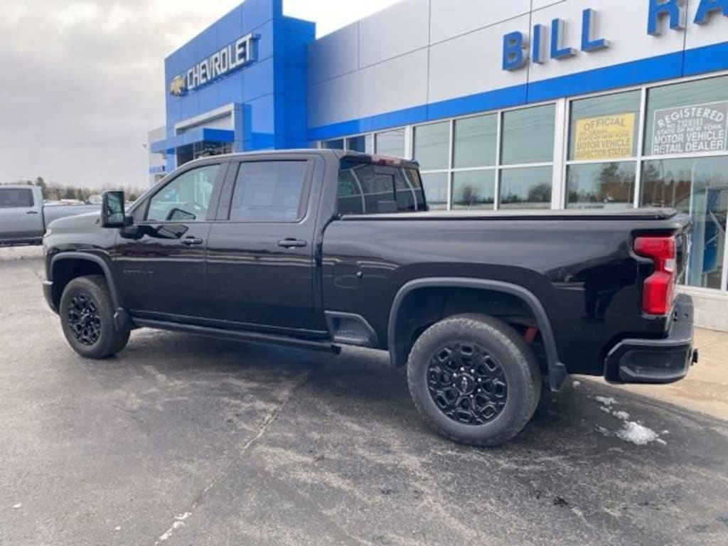 Clean CARFAX. Black 2024 Chevrolet Silverado 2500HD LTZ 4WD 10-Speed Automatic Duramax 6.6L V8 Turbodiesel 10-Speed Automatic, 4WD, Jet Black w/Perf Leather-Appointed Front Outboard Seat Trim, LTZ Convenience Package, LTZ Convenience Package II, LTZ Plus Package, Midnight Edition, Safety Package, Technology Package, 10-Way Power Driver Seat Adjuster w/Lumbar, 10-Way Power Passenger Seat Adjuster w/Lumbar, 120-Volt Bed Mounted Power Outlet, 120-Volt Interior Power Outlet, 15 Diagonal Multicolor Head-Up Display, 170 Amp Alternator, 2 Charge/Data USB Ports Inside Center Console, 220 Amp Alternator, 3.42 Rear Axle Ratio, 4-Wheel Disc Brakes, 4 Round Black Assist Steps (LPO), 6 Speakers, 6-Speaker Audio System, 720 Cold-Cranking Amps Heavy-Duty Battery, ABS brakes, Adaptive Cruise Control, Air Conditioning, AM/FM radio: SiriusXM with 360L, Apple CarPlay/Android Auto, Auto High-beam Headlights, Auto-dimming door mirrors, Auto-Dimming Inside Rear-View Mirror, Auto-dimming Rear-View mirror, Automatic temperature control, Bed View Camera w/2 Trailer Camera Provisions, Black Beltline Moldings, Black Chevytec Spray-On Bedliner, Black Molded Splash Guards (LPO), Bluetooth® For Phone, Body-Color Front Bumper, Body-Color Rear Bumper, BOSE Premium 7-Speaker Sound System, Brake assist, Bumpers: chrome, Chevrolet Connected Access Capable, Chrome Door Handles, Chrome Mirror Caps, Color-Keyed Carpeting Floor Covering, Compass, Deep-Tinted Glass, Delay-off headlights, Driver door bin, Driver Memory, Driver vanity mirror, Dual front impact airbags, Dual front side impact airbags, Durabed Pickup Bed, Electric Rear-Window Defogger, Electronic Cruise Control w/Set & Resume Speed, Electronic Stability Control, Engine Block Heater, Exhaust Brake, EZ Lift Power Lock & Release Tailgate, Floor-Mounted Center Console, Front 40/20/40 Split-Bench Seats w/Lockable Storage, Front anti-roll bar, Front Bucket Seats, Front Center Armrest w/Storage, Front dual zone A/C, Front fog lights, Front LED Fog Lamps, Front Rain-Sensing Wipers, Front reading lights, Front Rubberized Vinyl Floor Mats, Front wheel independent suspension, Fully automatic headlights, Gloss Black Front Bumper, Gloss Black Rear Bumper, Gooseneck/5th Wheel Prep Package, HD Rear Vision Camera, HD Surround Vision, Heated 2nd Row Outboard Seats, Heated door mirrors, Heated Driver & Front Outboard Passenger Seating, Heated front seats, Heated Steering Wheel, Heated steering wheel, High Gloss Black Door Handles, High Gloss Black Mirror Caps, High Idle Switch, Hill Descent Control, Hitch Guidance w/Hitch View, Illuminated entry, In-Vehicle Trailering App System, Keyless Open & Start, LED Cargo Area Lighting, LED Smoked Amber Roof Marker Lamps, LED Taillamps w/Fixed Signature, Low tire pressure warning, Manual Tilt & Telescoping Steering Column, Memory seat, Multi-Flex Tailgate, Occupant sensing airbag, Off-Road Suspension, OnStar & Chevrolet Connected Services Capable, Outside temperature display, Overhead airbag, Overhead console, Panic alarm, Passenger door bin, Passenger vanity mirror, Perf Leather-Appointed Front Outboard Seat Trim, Power Door Locks, Power door mirrors, Power driver seat, Power Front Windows w/Driver Express Up/Down, Power Front Windows w/Passenger Express Up/Down, Power passenger seat, Power Rear Windows w/Express Down, Power Sliding Rear Window w/Defogger, Power steering, Power Sunroof, Power windows, Power-Retractable Black Assist Steps, Preferred Equipment Group 1LZ, Premium audio system: Chevrolet Infotainment 3 Premium, Push Button Start, Radio: Chevrolet Infotainment 3 Premium System, Rain sensing wipers, Rear Camera Mirror, Rear Cross Traffic Alert, Rear reading lights, Rear Rubberized Vinyl Floor Mats, Rear seat center armrest, Rear step bumper, Rear Wheelhouse Liners, Rear window defroster, Remote keyless entry, Remote Vehicle Starter System, Safety Alert Seat, Security system, SiriusXM w/360L, Speed control, Speed-sensing