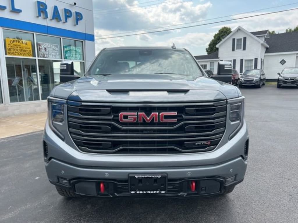 Clean CARFAX. Sterling Metallic 2024 GMC Sierra 1500 AT4 4WD 10-Speed Automatic EcoTec3 6.2L V8 10-Speed Automatic, 4WD, Jet Black w/Kalahari Accents w/Perforated Front Leather Seat Trim, AT4 Preferred Package, Power Sunroof, Technology Package, 10-Way Power Driver Seat Adjuster w/Lumbar, 10-Way Power Passenger Seat Adjuster w/Lumbar, 120-Volt Bed Mounted Power Outlet, 120-Volt Interior Power Outlet, 2 Charge/Data USB Ports Inside Center Console, 2 Type-C Charge-Only Rear USB Ports, 2 USB Ports, 220 Amp Alternator, 3.23 Rear Axle Ratio, 4-Wheel Disc Brakes, 7 Speakers, ABS brakes, Air Conditioning, AM/FM radio: SiriusXM with 360L, Apple CarPlay/Android Auto, Auto High-beam Headlights, Auto-dimming door mirrors, Auto-dimming Rear-View mirror, Auto-Locking Rear Differential, Automatic Emergency Braking, Automatic temperature control, Bed View Camera, Black Chrome Header & Grille Insert Bars, Block heater, Brake assist, Buckle to Drive, Bumpers: body-color, Color-Keyed Carpeting Floor Covering, Compass, Deep-Tinted Glass, Delay-off headlights, Driver door bin, Driver Memory, Driver vanity mirror, Dual front impact airbags, Dual front side impact airbags, Electric Rear-Window Defogger, Electronic Stability Control, Floor-Mounted Center Console, Following Distance Indicator, Forward Collision Alert, Front anti-roll bar, Front Bucket Seats, Front Center Armrest, Front dual zone A/C, Front fog lights, Front Pedestrian Braking, Front Prem Floor Liners w/Removable Carpet Insert, Front Rain-Sensing Wipers, Front reading lights, Front wheel independent suspension, Fully automatic headlights, GMC Connected Access Capable, HD Surround Vision, Heated 2nd Row Outboard Seats, Heated door mirrors, Heated Driver & Front Outboard Passenger Seating, Heated front seats, Heated rear seats, Heated steering wheel, Heavy-Duty Air Filter, Hill Descent Control, Hitch Guidance, Hitch View, Illuminated entry, In-Vehicle Trailering System App, Integrated Trailer Brake Controller, IntelliBeam Automatic High Beam On/Off, Keyless Open & Start, Lane Keep Assist w/Lane Departure Warning, LED Cargo Area Lighting, Low tire pressure warning, Memory seat, Multicolor 15 Diagonal Head-Up Display, Navigation System, Occupant sensing airbag, Off-Road Suspension, OnStar & GMC Connected Services Capable, Outside temperature display, Overhead airbag, Overhead console, Panic alarm, Passenger door bin, Passenger vanity mirror, Perforated Front Leather Seat Trim, Perimeter Lighting, Power Door Locks, Power door mirrors, Power driver seat, Power Front Passenger Windows w/Express Up/Down, Power Front Windows w/Driver Express Up/Down, Power passenger seat, Power Rake & Telescoping Steering Column, Power Rear Windows w/Express Down, Power Sliding Rear Window w/Rear Defogger, Power steering, Power windows, Preferred Equipment Group 4SB, Premium audio system: GMC Infotainment System, Premium Bose 7-Speaker Sound System, Push Button Start, Radio data system, Radio: Premium GMC Infotainment Audio System, Rain sensing wipers, Rear Camera Mirror, Rear Cross Traffic Braking, Rear Pedestrian Detection, Rear Prem Floor Liners w/Removable Carpet Insert, Rear reading lights, Rear seat center armrest, Rear step bumper, Rear Wheelhouse Liners, Rear window defroster, Red Recovery Hooks, Remote keyless entry, Remote Vehicle Starter System, Safety Alert Seat, Security system, SiriusXM w/360L, Speed control, Speed-sensing steering, Split folding rear seat, Spray-On Pickup Bedliner w/AT4 Logo, Steering Wheel Audio Controls, Steering wheel mounted audio controls, Tachometer, Telescoping steering wheel, Theft Deterrent System (Unauthorized Entry), Tilt steering wheel, Traction control, Trailer Camera Provisions, Trailer Side Blind Zone Alert, Trailering Package, Trip computer, Ultrasonic Front & Rear Park Assist, Universal Home Remote, Variably intermittent wipers, Ventilated Driver & Front Passenger Seats, Ventilated front seats, Voltmeter, Wheels: